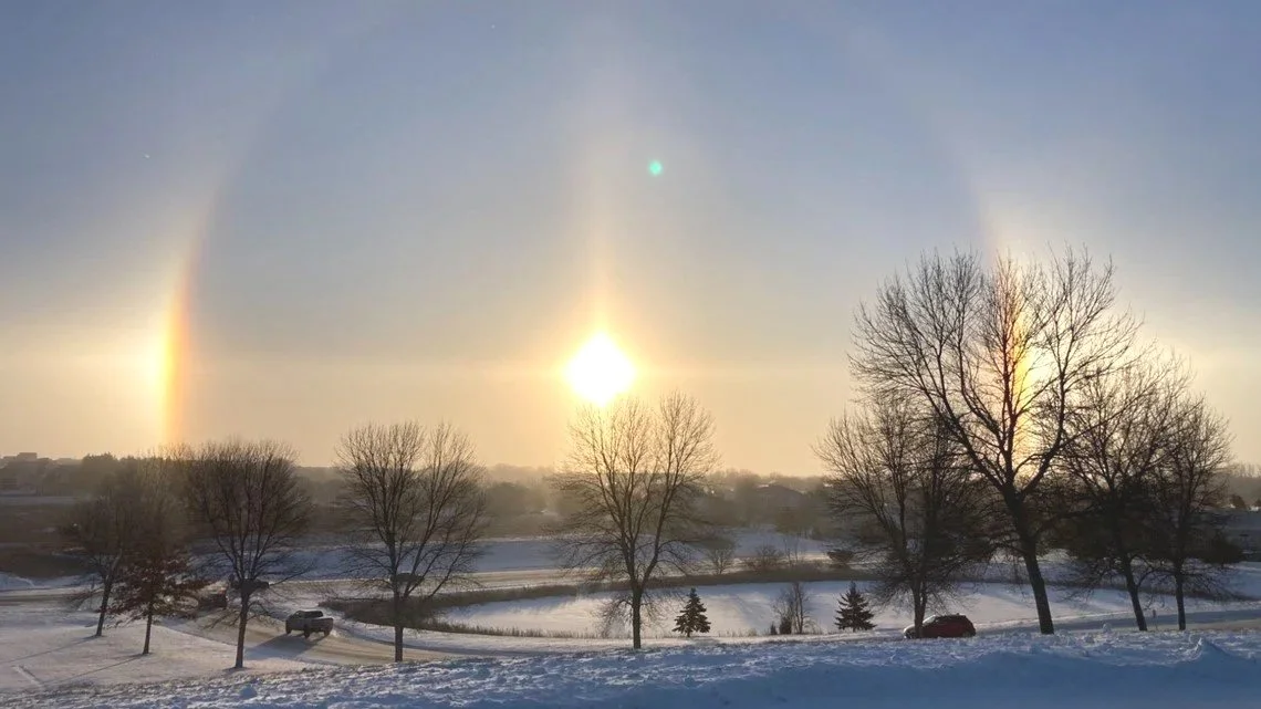 There’s a special thing that happens in cold climates. Some days, when the air is just right, sunlight hits atmospheric ice crystals that act as prisms and wrap the sun in a halo. Red light hugs the closest, but on the clearest, coldest days, the whole spectrum is visible.